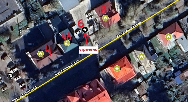 Инвестор «дома за рубль» в пер. Кустарном, 6, Евгений Калугин также говорил, что планирует восстановить и полностью утраченный дом на соседнем пустыре. На его существование указывают сохранившаяся брандмауэрная стена. Сейчас он уже возвел каркас будущего строения. По его словам, это будет новодел, но оформленный в историческом стиле.
