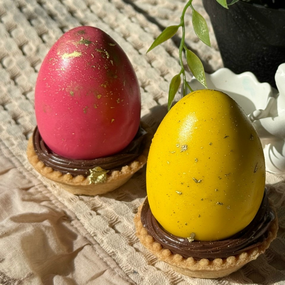 Тем, кому мало главных пасхальных блюд, можно заказать набор пирожных в форме яйца «Кокос-маракуйя» — они из кокосового мусса с жидкой начинкой из пюре маракуйи и манго, покрыты тонким слоем белого и молочного шоколада. Или эффектное (весом в полкило!)