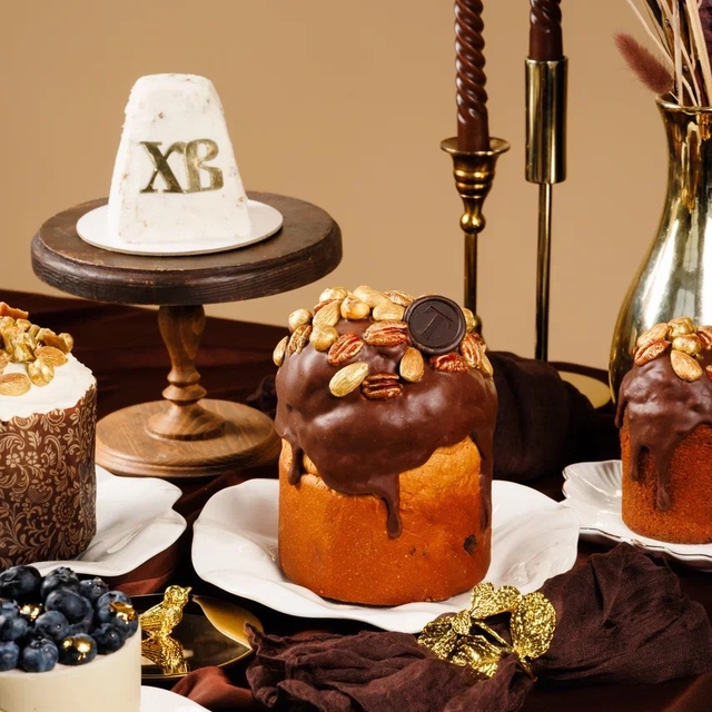 Главный акцент коллекции — «Томский пасхальный кулич». Сдобный, мягкий, с ассорти сибирских ягод — жимолости, клюквы, брусники, земляники — настоянных на Амаретто и Лимончелло. Во вкусе — баланс: насыщенная ягодная кислинка, калёный кедровый орех, тёплая ваниль и лёгкие цитрусовые ноты. Финально кулич пропитывают ароматным пуншем. Цена — от 2 700 рублей.