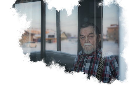 80-летний Арсентьевич в красной клетчатой рубашке и тренировочных штанах с подтяжками. От его рукопожатия становится больно.