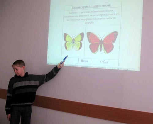 Интеллектуальная игра требовала хорошей подготовки. Вопросы касались не отдельных страниц Красной книги Томской области, а определяли знания по всем ее разделам – растительный мир, насекомые, птицы и т.д. Электронную версию для медиа-игры разработал восьмиклассник Данил Котырло – член ДЮПа. Хотя программа рассчитана на средний возраст, в ней по своей инициативе принимают участие и начальные классы. Школу № 12 представляли не только пятые классы, но и второклассники. Заинтересовано работала команда четвероклассников школы № 30. А в супер-игру вышли команды школ №№ 2, 8, 16, 49, 64. Дата решающего старта пока не определена.