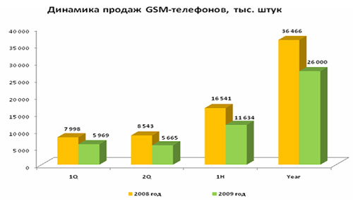 По итогам 2009 года объем рынка может сократиться на 28,7% по сравнению с 2008 годом, до 26 млн телефонов.