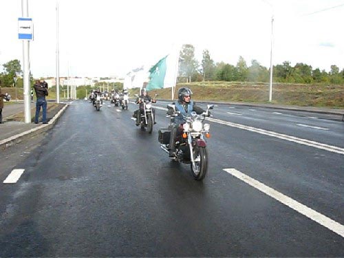 Торжественное открытие транспортного движения на первом участке развязки Клюева – Осенняя - Балтийская обозначила колонна байк-клуба "Стальной ветер", проехавшая по Клюева с флагом Томска.