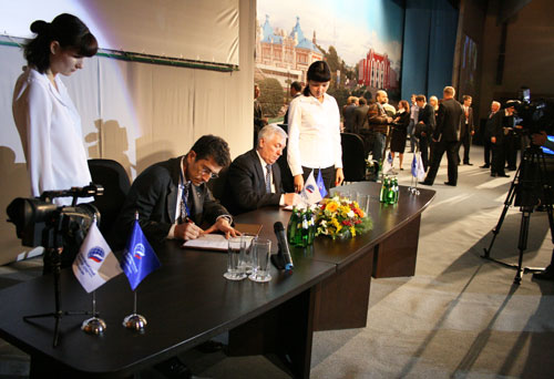 В первый день форума, 24 сентября, губернатор Виктор Кресс и руководитель Федерального агентства по делам молодежи Василий Якеменко подписали соглашение о сотрудничестве между Федеральным агентством и администрацией региона. Документом предусматривается сотрудничество сторон в области развития малого и среднего предпринимательства молодежи и реализации пилотного проекта "Региональная система по вовлечению молодежи в предпринимательскую деятельность" в Томской области.