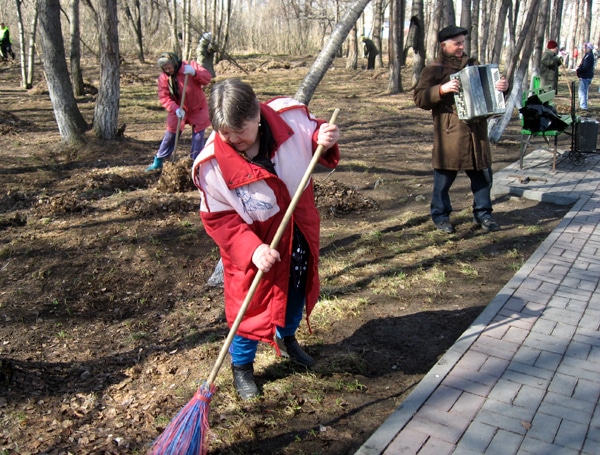 За каких-то три часа было собрано и вывезено несколько КамАЗов мусора. Атмосферу праздника создавал приглашенный гармонист.