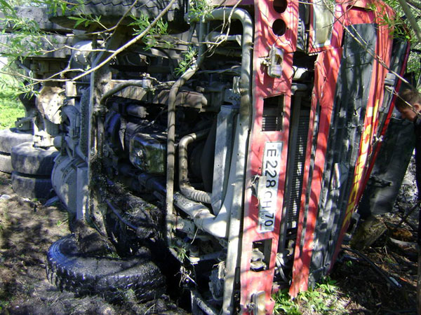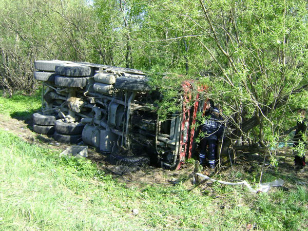 На десятом километре трассы Асино-Томск перевернулся грузовик с гравием (ФОТО)