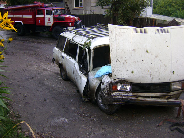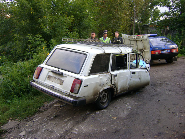 Судя по следам на газоне и ободранному тополю, водитель ВАЗА-2104 не справился с управлением на повороте и врезался в дерево около дома №34. Со слов пассажиров ВАЗа водитель с места аварии скрылся.