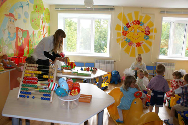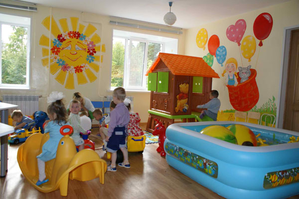 Сейчас в игровой комнате несколько зон: есть развивающая зона с Монтессори- материалами, широко используемыми в детских развивающих центрах; зона для обучения детей и совместного творчества с воспитателями; игровая зона с горкой, качалками, машинами; зона отдыха с удобными диванами.