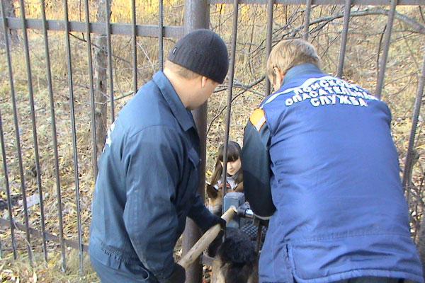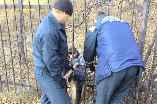 В Томске спасатели освободили застрявшую между прутьями забора овчарку (ФОТО)