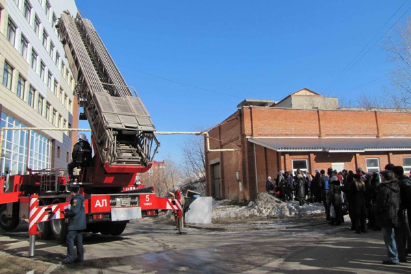 По замыслу учений возгорание произошло в лекционном зале на 2-м этаже. Пожару автоматически был присвоен 3-й уровень сложности. К месту были направлены практически все пожарно-спасательные подразделения Томска.