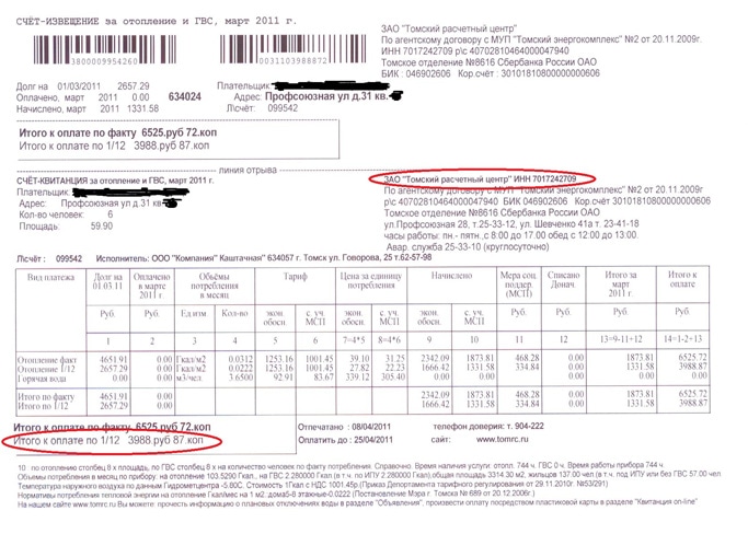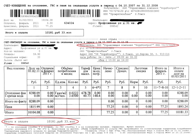 «Томский расчетный центр» предупреждает томичей: прежде, чем оплатить текущее начисление за тепло и ГВС – внимательно прочтите содержание квитанции. В квитанциях ООО «Управляющая компания «НордКонтрол» значатся непривычно высокие суммы к оплате, есть строка «пеня». Квитанции же «Томского расчетного центра» содержат месячное начисление оплаты за услуги.
