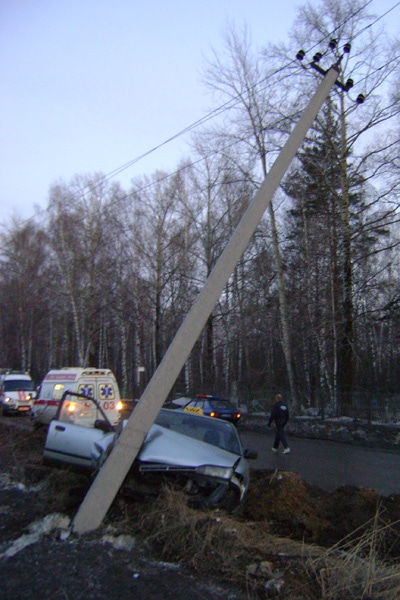 Водитель автомобиля Toyota Carina, который двигался по Коларовскому тракту со стороны п. Зональная станция, не справился с управлением, в результате чего автомобиль выехал на правую обочину и врезался в столб. От удара столб с электропроводами упал на автомобиль, перекрыв часть дороги.