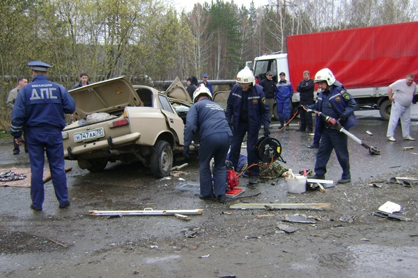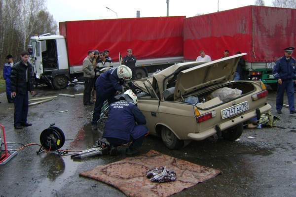 На место ДТП были вызваны сотрудники ТО ПСС, которые извлекли тела погибших из поврежденного "Москвича" с помощью гидравлических инструментов.