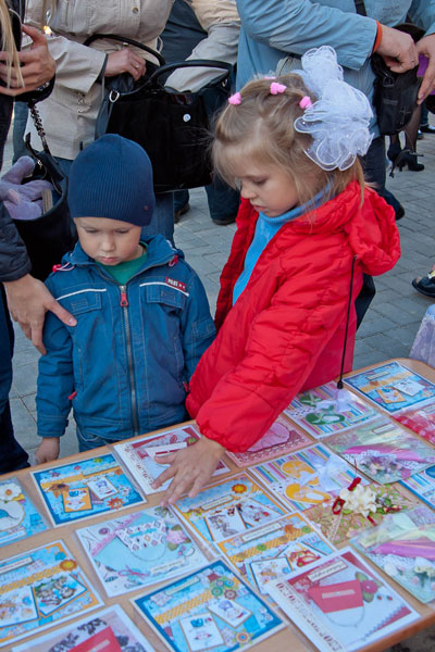 Немало томичей внесли свой вклад в помощь Даниле Прокопьеву. Волонтеры фонда им. Алены Петровой раздавали детям конфеты, а за пожертвование им предлагали выбрать «Добрую открытку», сделанную руками мам детей, больных раком крови. Открытки разошлись очень быстро и «собрали» 10 тыс. рублей. Эти деньги пойдут на продолжение занятий по арт-терапии для мам и детей.