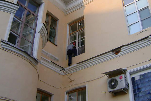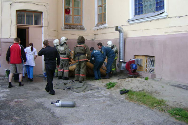 На месте выяснилось, что один из пациентов, мужчина 64-х лет, запер кабинку мужского туалета на третьем этаже и вылез через окно на улицу с явными суицидальными намерениями. Сотрудники клиники оперативно обложили матрасами место возможного приземления, торчащую из земли трубу и растянули покрывало, однако от травм мужчину это бы не спасло.