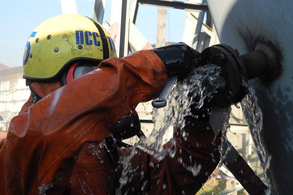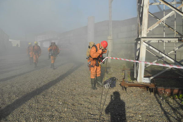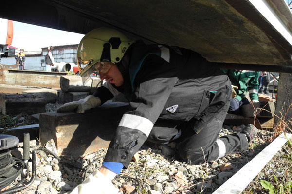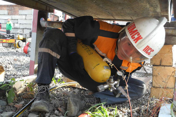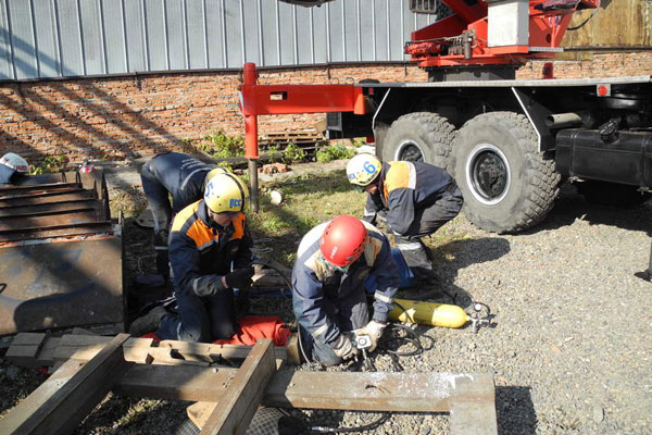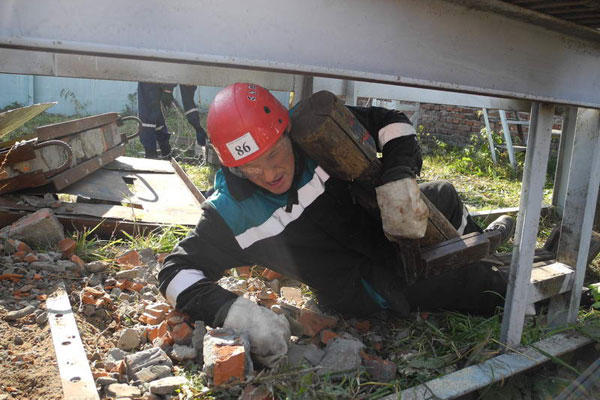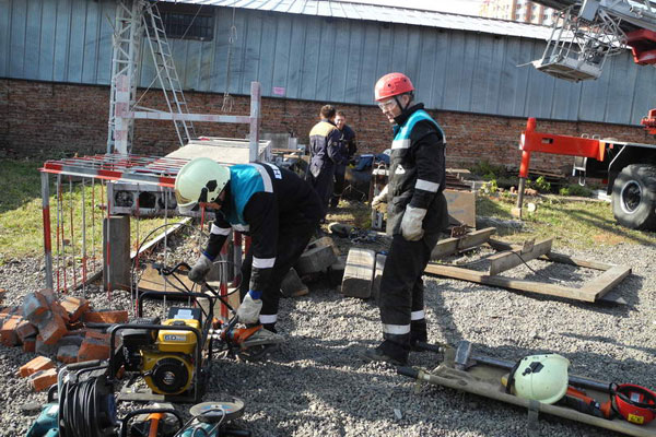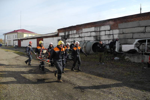Здесь же, на техногенном городке, прошел первый этап соревновнований - проведение ПСР в условиях техногенного ЧС.