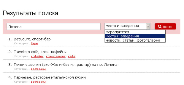 Кроме того, если вы не знаете точного названия кафе, ресторана или парка, вы можете найти их по названию улицы или словам, которые могут содержаться в описании искомого заведения.