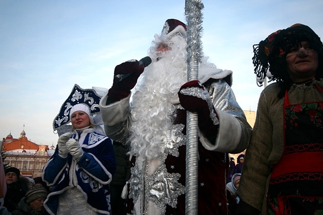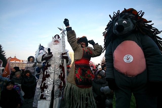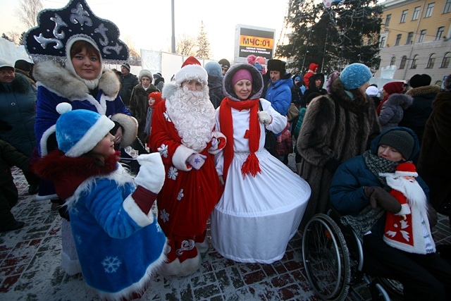 На площади Новособорной мэр Томска Николай Николайчук вместе с Дедом Морозом и Снегурочкой, возглавлявшими праздничное шествие, открыл главную городскую ёлку. Вместе с ними томичей с наступающим праздником поздравили татарский и белорусский Деды Морозы.