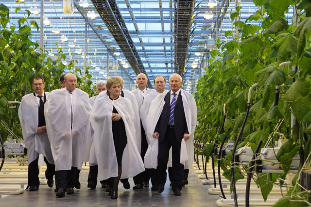 Согласно проекту урожайность огурцов в тепличном хозяйстве составит 70-80 кг, томатов – 25-30 кг в год с одного квадратного метра. Столь высокой производительности овощей планируется добиться за счет новых сортов и современных технологий, которые включают в себя автоматически регулируемый микроклимата (влажность, освещенность и температуру) и систему питания на гидропонике. Еще одна составляющая высокой урожайности – само конструктивное решение теплиц. Площадь «стеклянного домика» на данный момент составляет 27 тыс. кв. метров. Отапливается тепличное хозяйство за счет газа.