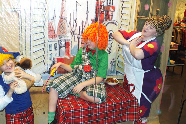 Встречала посетителей витрина на тему шведских сказок. Ее создали и на 4 часа оживили дети. Авторам двух сказочных композиций от 7 до 10 лет, и хотя они еще не доросли до участия в конкурсе на общих основаниях (по положению о конкурсе «Живые витрины» участниками могут быть люди с 16 лет) и демонстрировали свою витрину вне конкурсного голосования, зрители с удовольствием оставляли им симпатии в виде ярких стикеров.