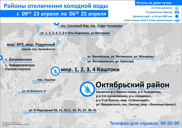 Как сообщалось, в эти дни бригады «Томскводоканала» проведут работы сетях городского водоснабжения.