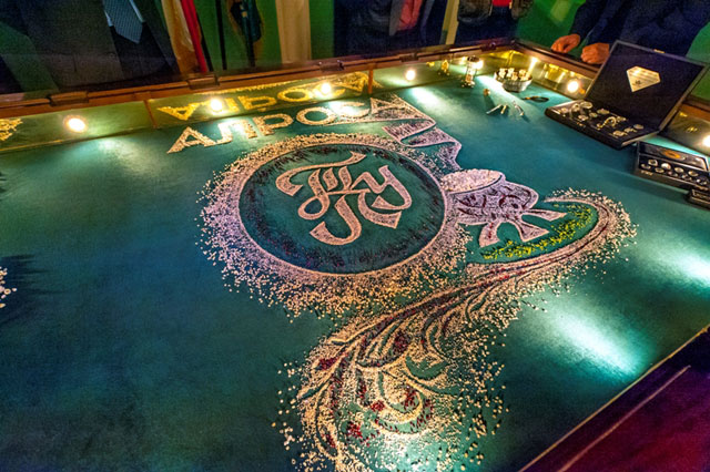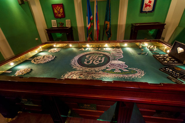 "Герб ТПУ выложили в знак уважения к нашим специалистам и выпускникам, которые работали, работают в "Алроса" и участвовали в открытии месторождений. Нам также подарили небольшой сувенир – герб ТПУ, выложенный на серпентините из алмазной крошки массой 8 карат", – рассказал заведующий кафедры геологии и землеустройства, руководитель Центра "Космогеология" ТПУ Анатолий Поцелуев.