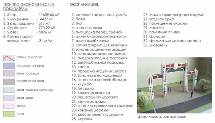 Проектом предусмотрено создание и размещение сезонных обслуживающих объектов и капитальных строений предприятий общественного питания.
