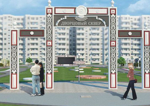 В основе концепции развития территории «Дворцового сквера» лежит ассимметричная композиция, построенная на пересечении двух основных направлений движения людских потоков с севера на юг и с запада на восток. Здесь расположена площадь для проведения массовых праздничных мероприятий. В ее центре - ландшафтно-декоративная композиция, которая в зимнее время будет использоваться для установки новогодней елки.