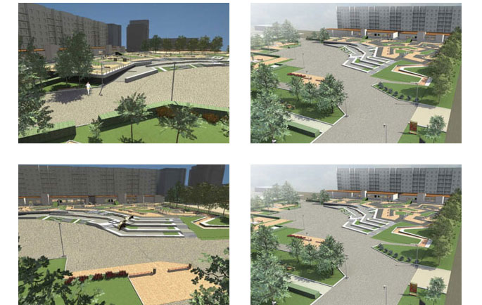 Одно из основхы преимуществ проекта - минимальное вмешательство в существующий ландшафт. Все малые архитектурные формы выполнены из легих металлических или деревянных сборных эелментов, которые легко монтируются и заменяются в случае утраты. Предполагаемые декоративные водоемы можно заменить на клумбы с садовыми цветами.