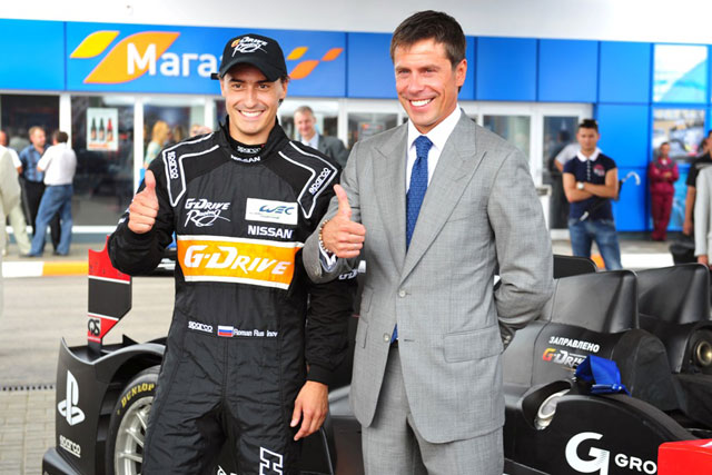 Автогонщник Роман Русинов и Директор дирекции региональных продаж «Газпром нефти» Александр Крылов