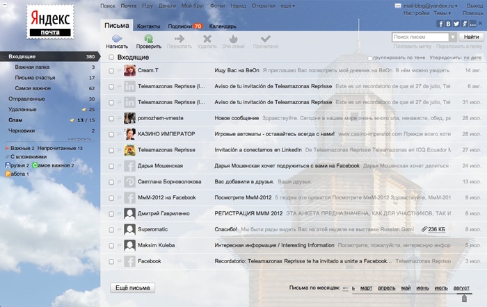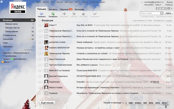 Яндекс.Почта сделали оформление электронного ящика с видами Томска