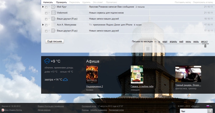 Прямо на главной странице электронного ящика можно узнавать о томской погоде, репертуаре кинотеатров и телеканалов.