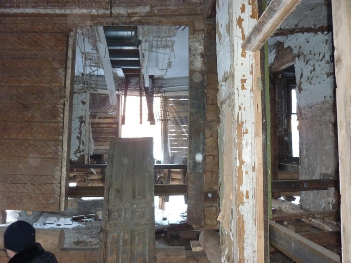 В начале прошлого года на доме велись восстановительные работы: был укреплен фундамент и заменены нижние венцы. Однако с тех пор никаких подвижек больше не было: объект заморожен.