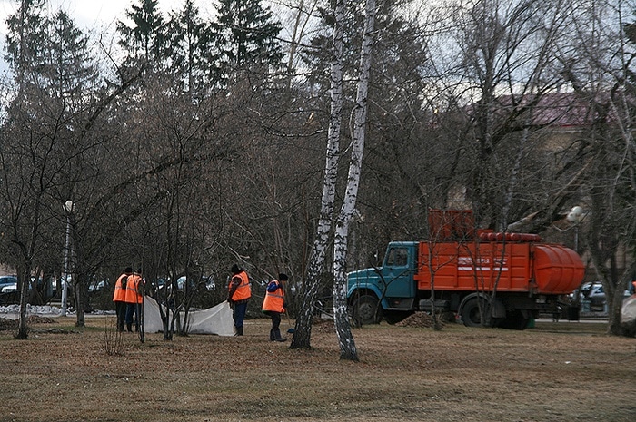 На пл. Ново-Соборной ведутся работы по расчистке газонов и уборке тротуаров. По словам и.о. начальника департамента городского хозяйства Александра Живоглядова, фонтан уже отмыт и готов заработать к 4 мая.