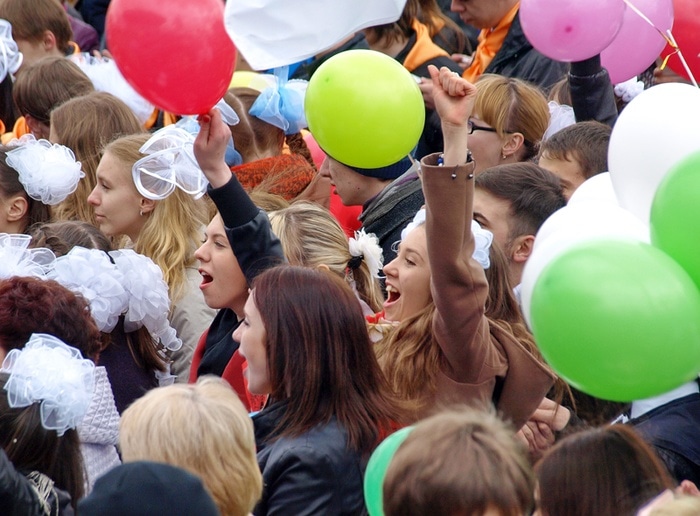 Шествие началось в 14.00 - празднично украшенные колонны выпускников прошли по проспекту Ленина от пл. Новособорной до Театра Драмы.
