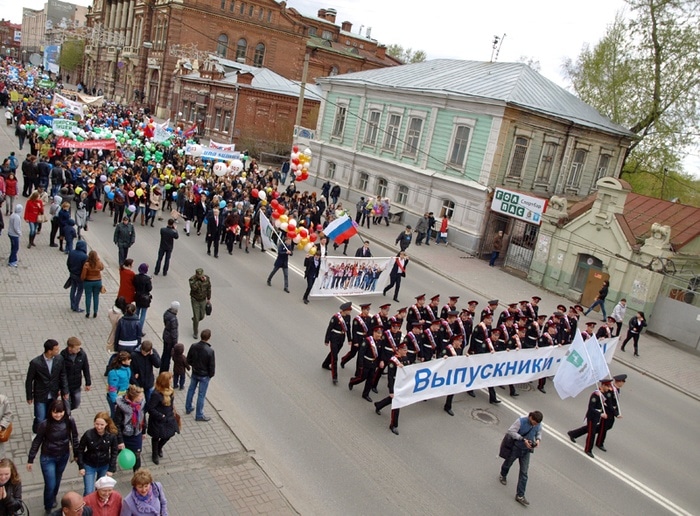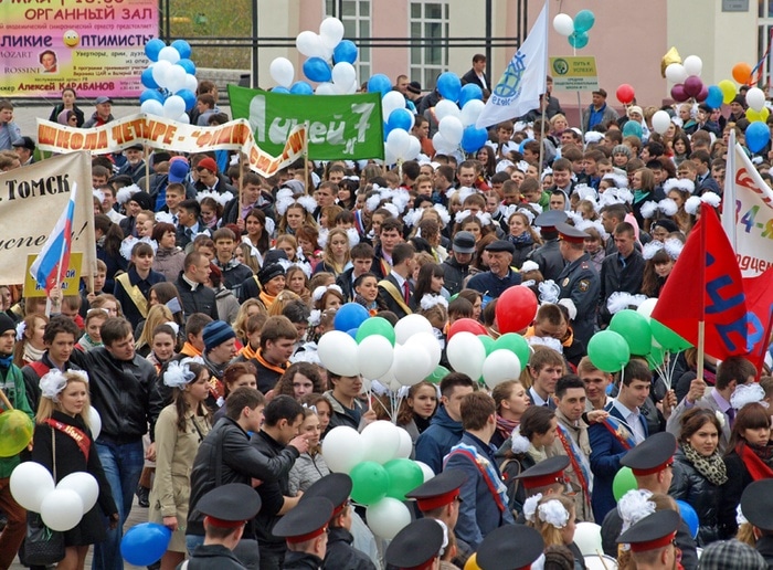 В шествии приняли участие около 2 тыс. выпускников из 48 муниципальных общеобразовательных учреждений Томска.