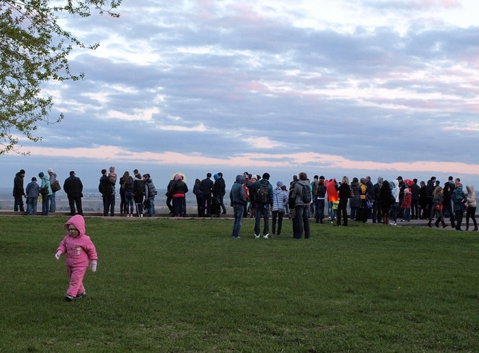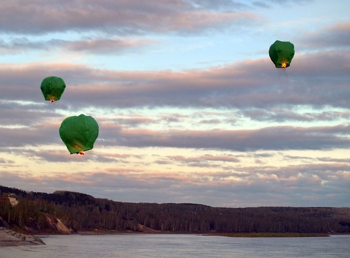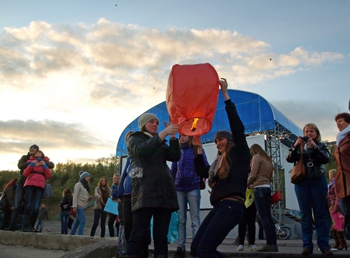 В завершении дня в Лагерном саду томичи запустили небесные фонарики.