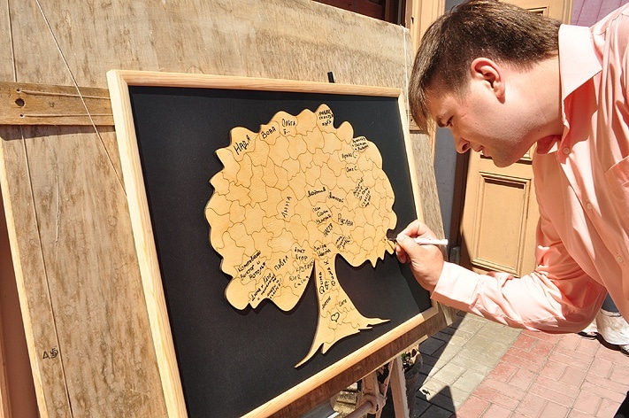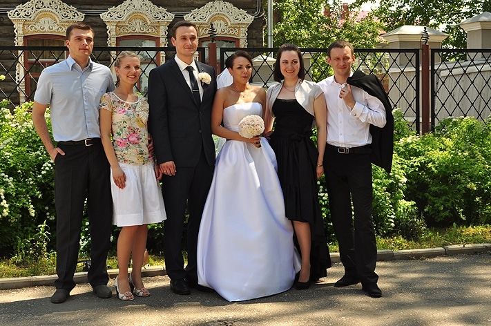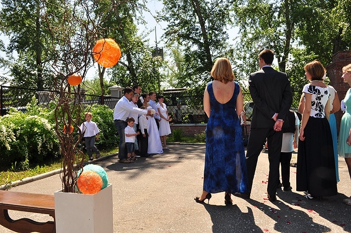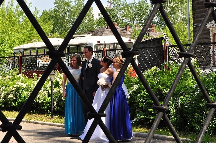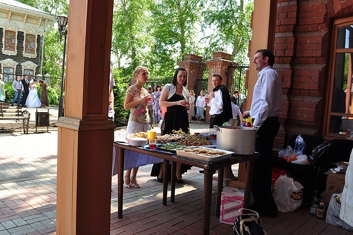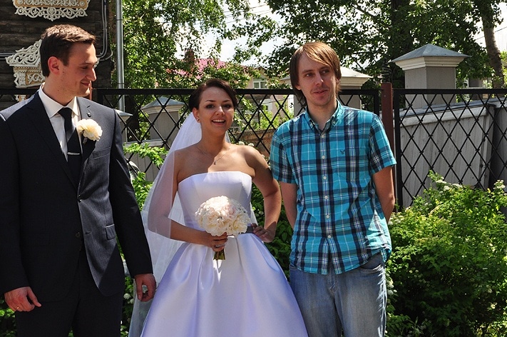 Церемония бракосочетания прошла в субботу с 13.00 до 16.00 в усадьбе, на открытой площадке. В ней приняли участие около 50 человек. Для гостей и молодоженов был организован фуршет, фотосессии и экскурсии по дому Шишкова.