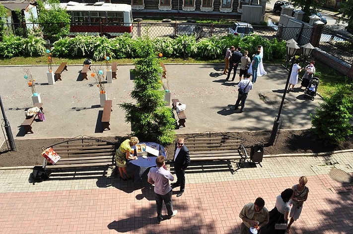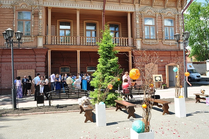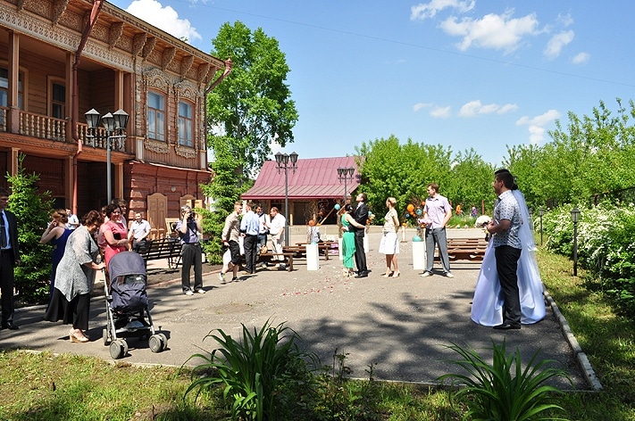 Томский областной Дом искусств традиционно является объектом особого внимания свадебных процессий, однако выездная регистрация в усадьбе дома по ул. Шишкова, 10 состоялась впервые.