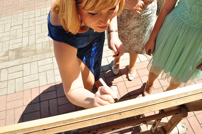 «Церемония началась в 13.00, когда приехала невеста. Молодожены обменялись кольцами и произнесли клятву», — рассказала методист Дома искусств.