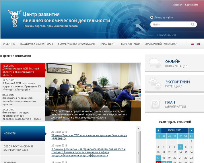 Двуязычный интернет-ресурс (русская и английская версии) интегрирован в общероссийскую систему поддержки внешнеэкономической деятельности, содержит информацию о потенциале томского бизнеса для зарубежных и российских компаний.