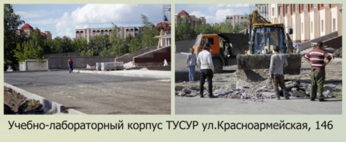 Также в пресс-службе горадминистрации сообщают, что на ул. Красноармейская, 146 на прилегающей территории учебно-лабораторного корпуса ТУСУР ведутся работы по комплексному благоустройству с устройством асфальтобетонного покрытия, озеленения, декоративного освещения и установкой бортовых камней.