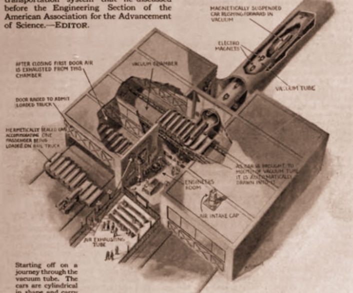 Элон Маск усовершенствовал идею, высказанную и разработанную в первое десятилетие 20 века. Почти сто лет назад российский ученый Борис Вейнберг в Томском технологическом институте создал концепцию вакуумного поезда будущего. В его работе «Движение без трения» рассказывается о вагонах, которые силой электромагнитного поля движутся по медной трубе безо всякой опоры.