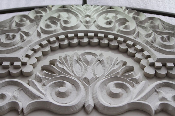 Все наличники являются точными копиями тех, что украшают известные городские здания, расположенные на пр. Ленина, 58, ул. Красноармейской, 79А, ул. Татарской, 6 и 25, ул. Пушкина, 38, ул. Шишкова, 14 и ул. Войкова, 21.