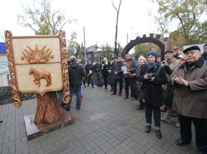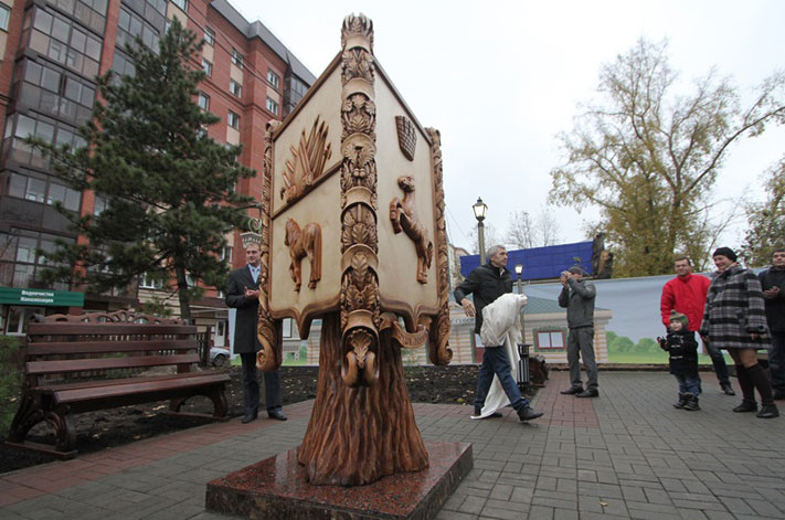 В центре сквера разместился деревянный герб города - работа томских мастеров Александра Ромашова и Александра Царегородцева.