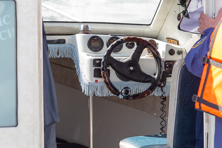 После начались показательные выступления на воде. Сначала суда прошли кильватерной колонной, продемонстрировав мастерство судоводителей и эксплуатационные возможности техники. Затем было проведено показное занятие по задержанию маломерного судна без регистрационных номеров, управляемого нетрезвым водителем, и помещение его на специализированную муниципальную стоянку.