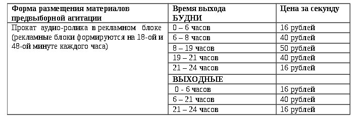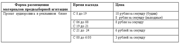 Сведения о размере и других условиях оплаты эфирного времени при размещении материалов предвыборной агитации в Томской области