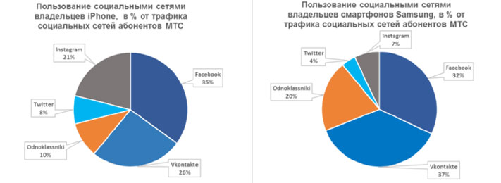 Аналитика МТС: Владельцы iPhone делают «селфи» в Instagram, пользователи Samsung активно посещают соцсеть «Одноклассники»