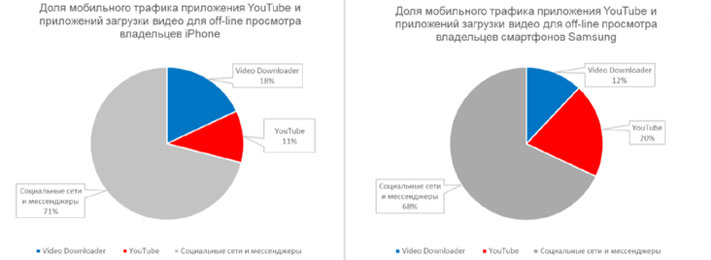 - треть трафика пользователей смартфонов обоих производителей приходится на просмотр видео в режиме on-line или его загрузку для последующего просмотра в off-line.