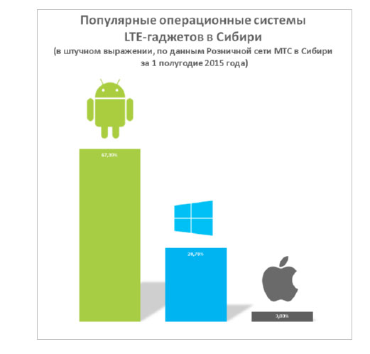При покупке флагманских моделей LTE-смартфонов посетители сибирской розницы МТС предпочитают устройства под управлением операционной системы Android — на их долю прошлось 67 процентов от проданных смартфонов с 4G. Второй по популярности стала Windows Phone (29 процентов), замыкает тройку iOS (4 процентов).